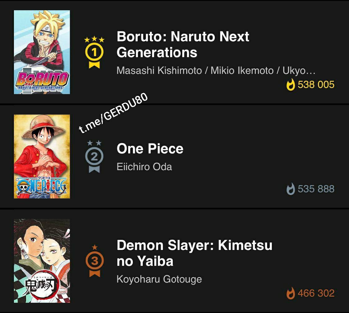 👈 با این نتیجه، مانگاهای One Piece و Demon slayer به ترتیب در جایگاه دوم و سوم قرار گرفتن و مانگا بوروتو هم به جایگاه اول رسید.🏆
