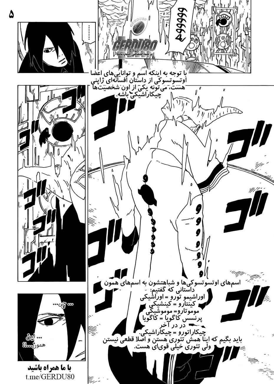 تو چپتر 35 دیدیم که ساسکه وارد یه بُعد شد که شش دایره دید که با استفاده از اون چهار تا تونست بفهمه که موموشیکی و کینشیکی و کاگویا و یه اوتسوتسوکی جدید که احتمال بسیار قوی ایشیکی هست، وجود داره.