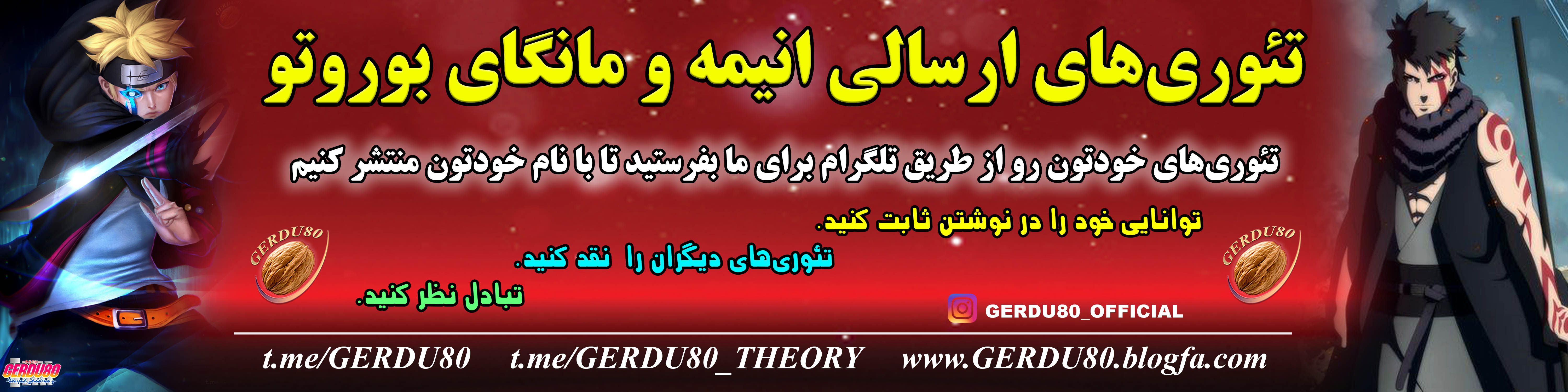 بسم الله الرحمن الرحیم در این کانال به معرفی انیمهها و مانگاهای ترجمه شده توسط تیم گردو۸۰| GERDU80 با محوریت انیمه در حال پخش بوروتو و دیگر انیمه و انیمیشن های پرطرف دار می پردازیم. t.me/GERDU80 و aparat.com/GERDU80 و instagram.com/GERDU80_OFFICIAL